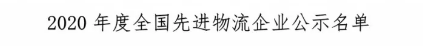 天源国际物流有限公司荣获2020年度全国先进物流企业荣誉称号