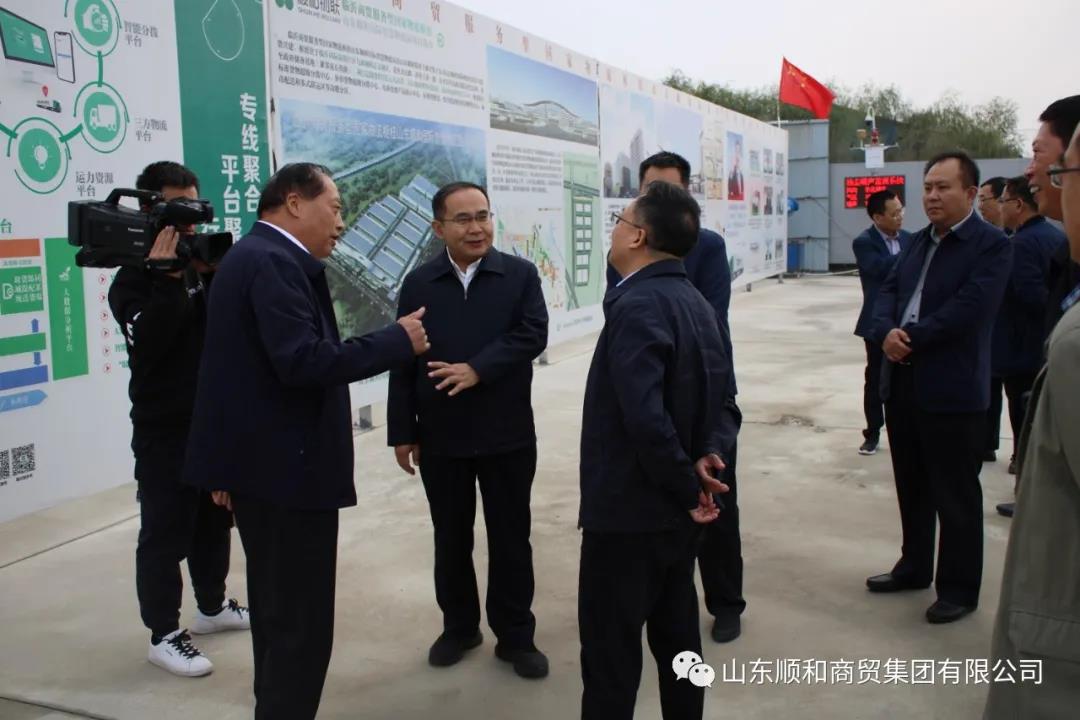10月20日下午,省自然资源厅副厅级干部赵培金一行7人到临沂商贸服务型国家物流枢纽山东顺和国际智慧物流园项目现场参观调研。临沂市兰山区委副书记、区长沈如茂,兰山区委常委、副区长纪丙坤等领导参加。集团党委书记、董事长赵玉玺,集团党委委员、副总经理赵国伟等人员陪同接待。