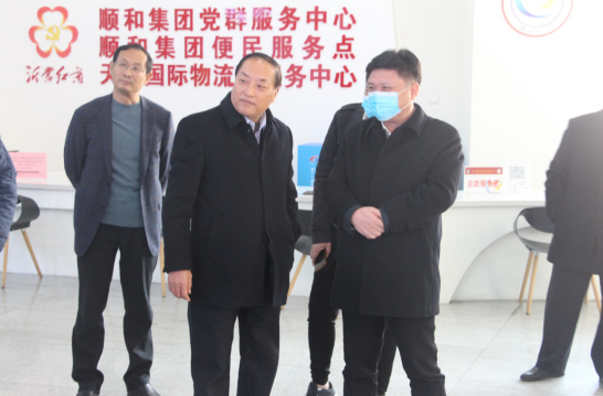 12月17日上午,福州市连江县委书记周应忠一行到顺和直播电商科技产业园、天源国际物流园、山东顺和国际物流有限公司等地参观调研,临沂市兰山区商城管委会党委书记、管委会主任刘爱友等陪同调研,顺和集团党委书记、董事长赵玉玺,集团党委副书记、总经理许大勇等接待来访。