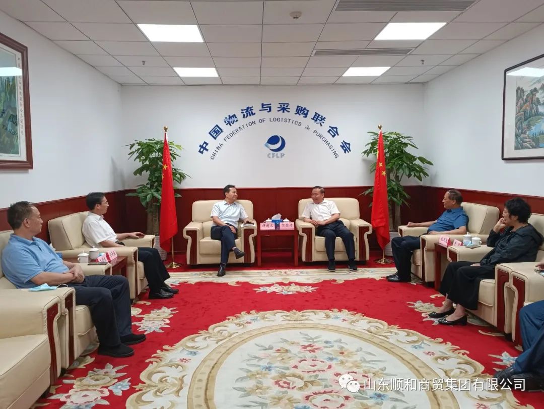 8月4日,集团党委书记赵玉玺陪同临沂市副市长、市政府党组成员薛超文,临沂商城党工委书记、管委会主任王景美一行与中国物流与采购联合会副会长贺登才在北京会见,国家物流枢纽联盟秘书处工作人员及相关单位负责同志参加了会见。