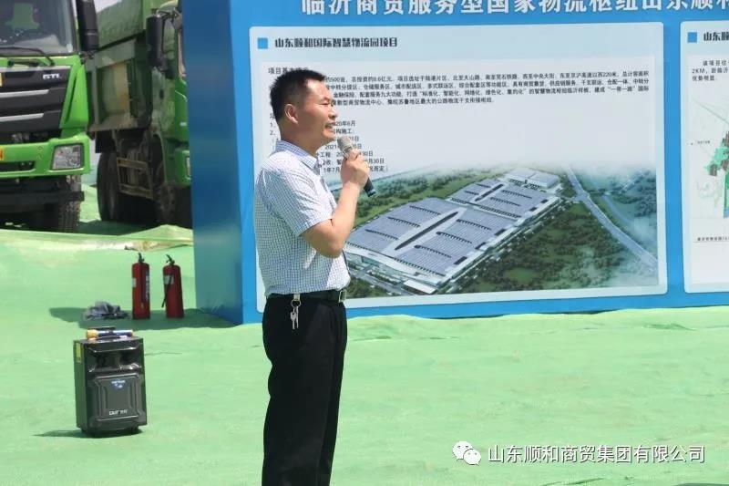 5月28日,正当全国两会胜利闭幕之际,顺和集团隆重举行临沂商贸服务型国家物流枢纽顺和国际智慧物流园项目动工仪式。区人大常委会副主任王玉杰,区发改局副局长李桂林,兰山经济开发区党工委副书记,管委会副主任孙鹏飞,兰山经济开发区管委会副主任郑峰,兰山经济开发管委会区副主任王传栋,兰山经济开发区管委会安监局局长公昭呈等出席动工仪式。参加开工仪式的还有施工单位代表、专线公司代表、顺和集团党委、董事会成员、李庄社区两委班子成员以及集团全体工作人员,集团党委副书记、总经理许大勇主持开工仪式。