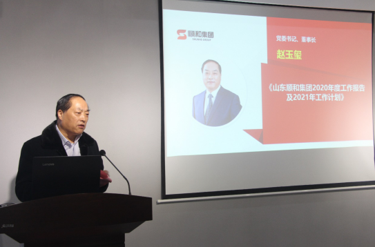 随后集团党委书记、董事长赵玉玺做了重要讲话,董事长在讲话中首先回顾了2020年集团取得的成绩:集团各下属企业2020年的经济收入情况;“顺势起航 和聚未来”国家物流枢纽建设暨临沂物流转型升级沙龙大会圆满召开;“创新物流枢纽建设 助力打造东方商都”国家物流枢纽承载城市建设研讨会暨临沂商贸物流转型发展高峰论坛圆满举行;中宣部“走向我们的小康生活”主题采访团走进顺和集团;社区二期旧居改造项目工作的圆满完成;山东省重点项目国家物流枢纽顺和国际智慧物流园项目顺利开工;与中科院空天院开展北斗科技应用系统工程。随后,集团董事长赵玉玺表示,2021年是集团紧跟时代潮流,积极创新转变,促进产业升级,实现高质量发展的关键,一定要坚持把集团经济收入、项目投资计划、重点项目工作、党建组织建设、公司管理工作、安全工作、社区工作共七大板块做好做强。